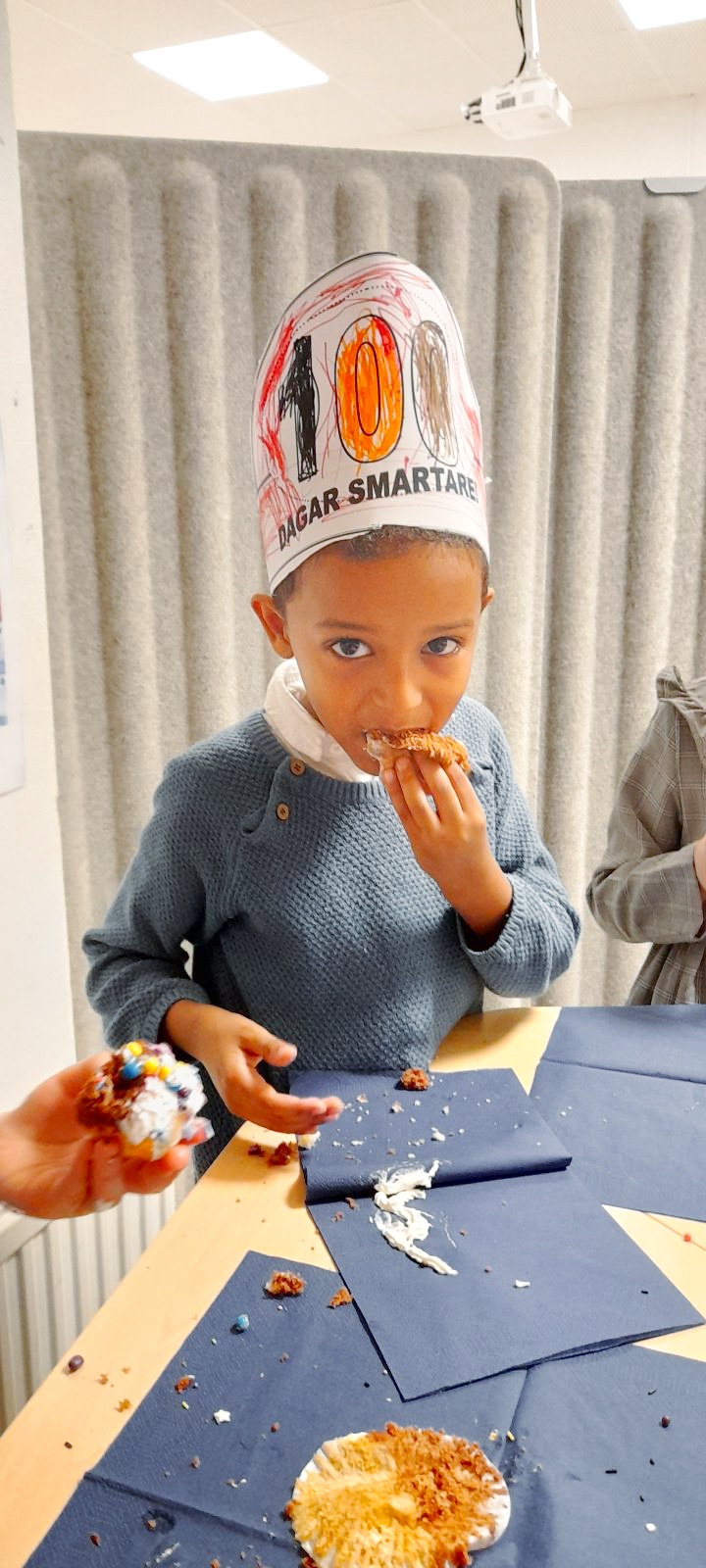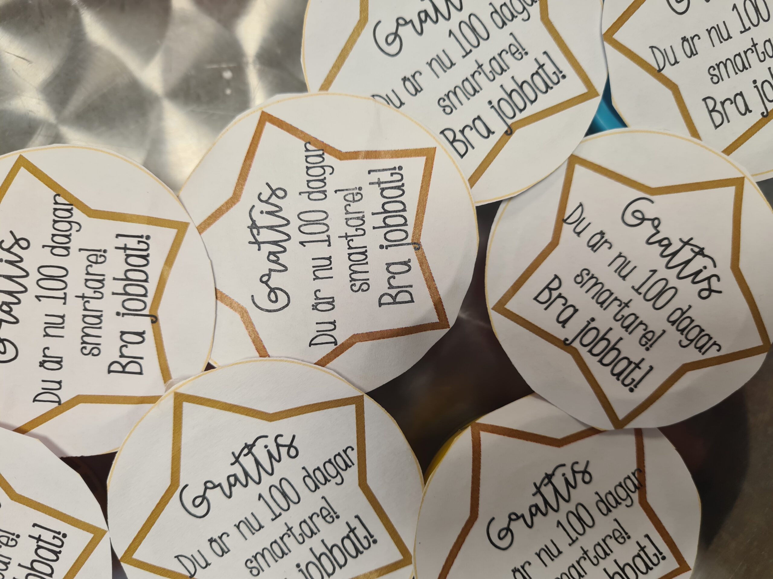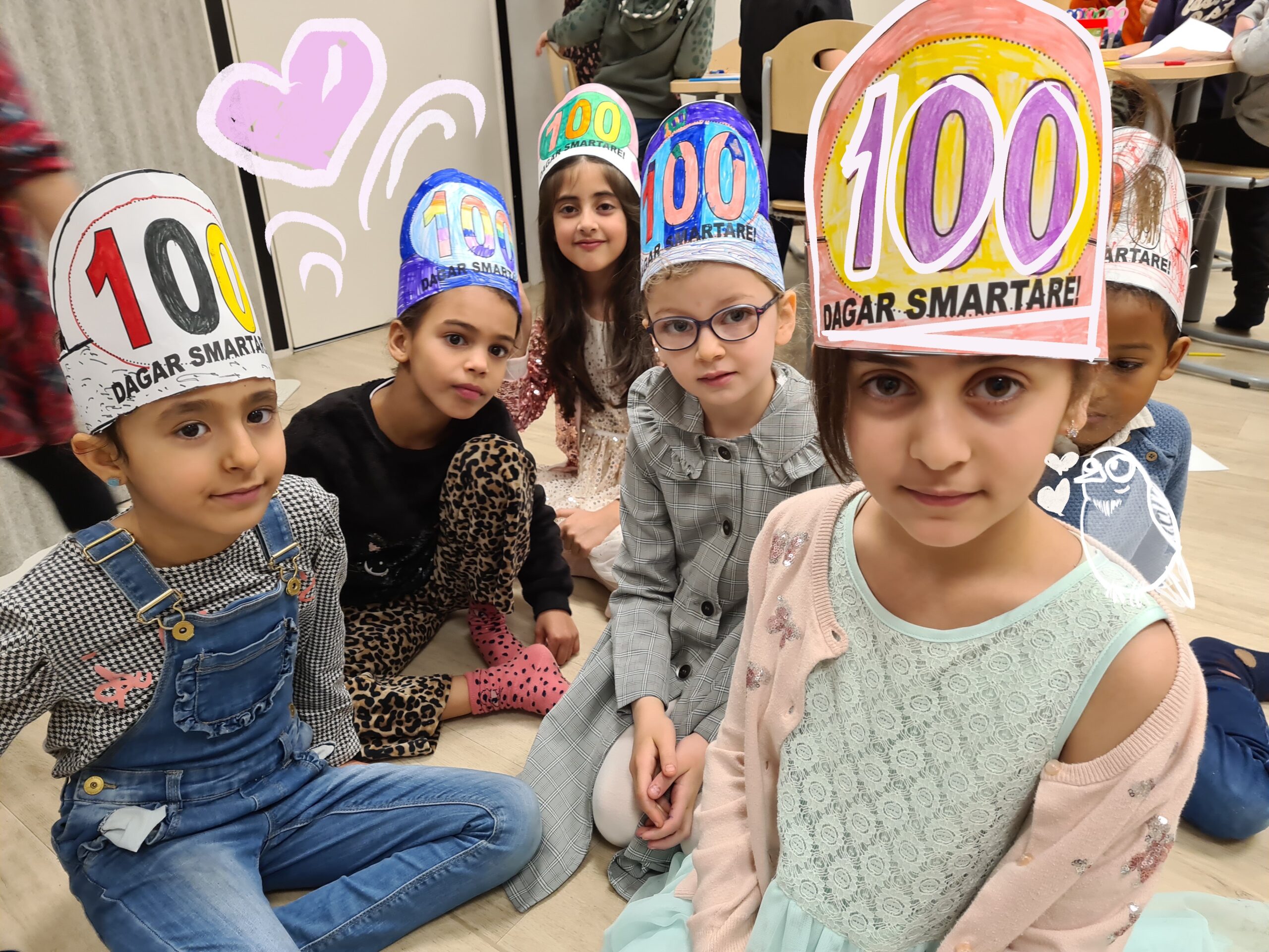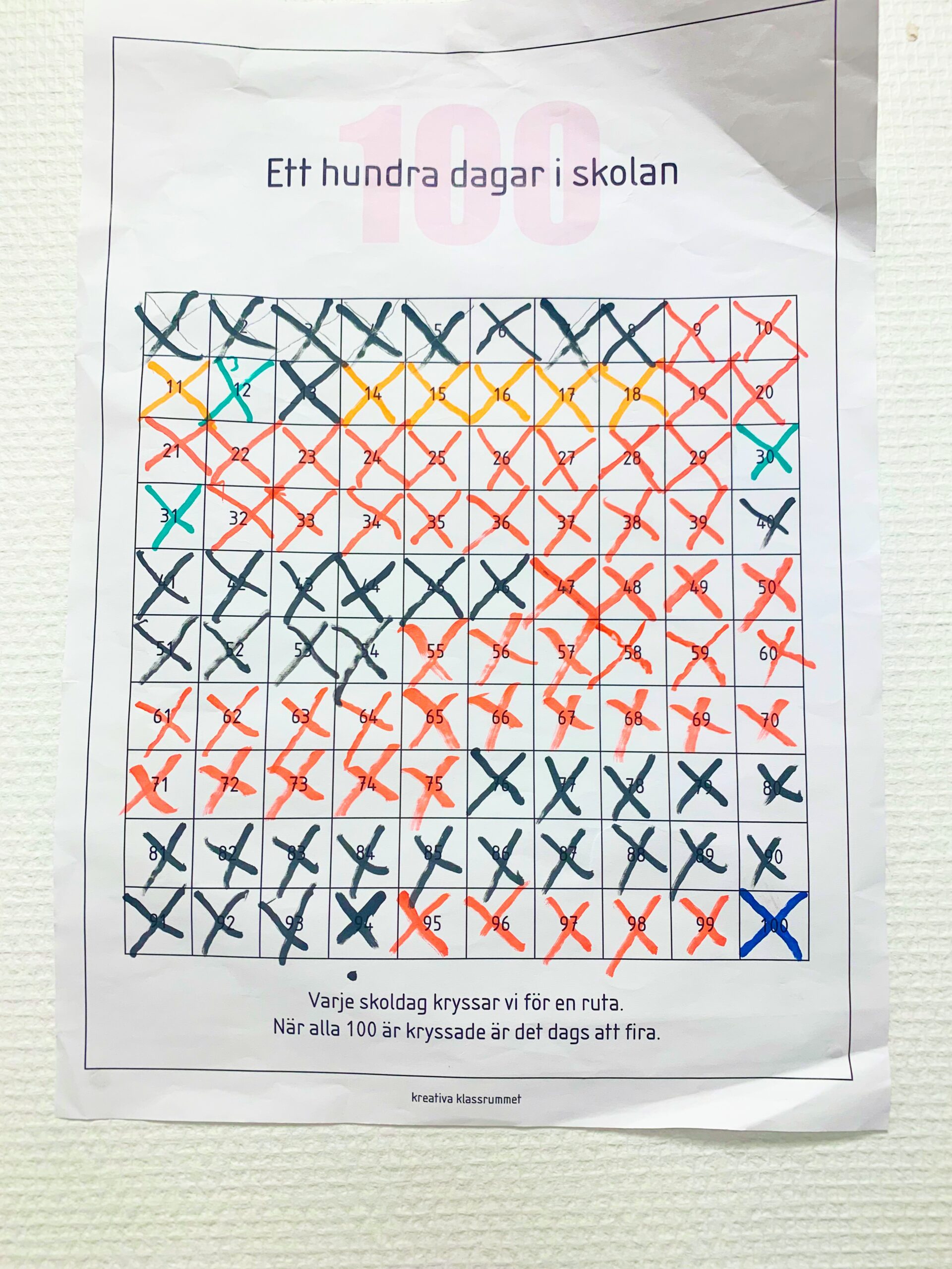 Eleverna har kryssat en ruta varje skoldag tills det blev 100 dagar! Nu man kan säga att de är 100 gånger smartare 😀