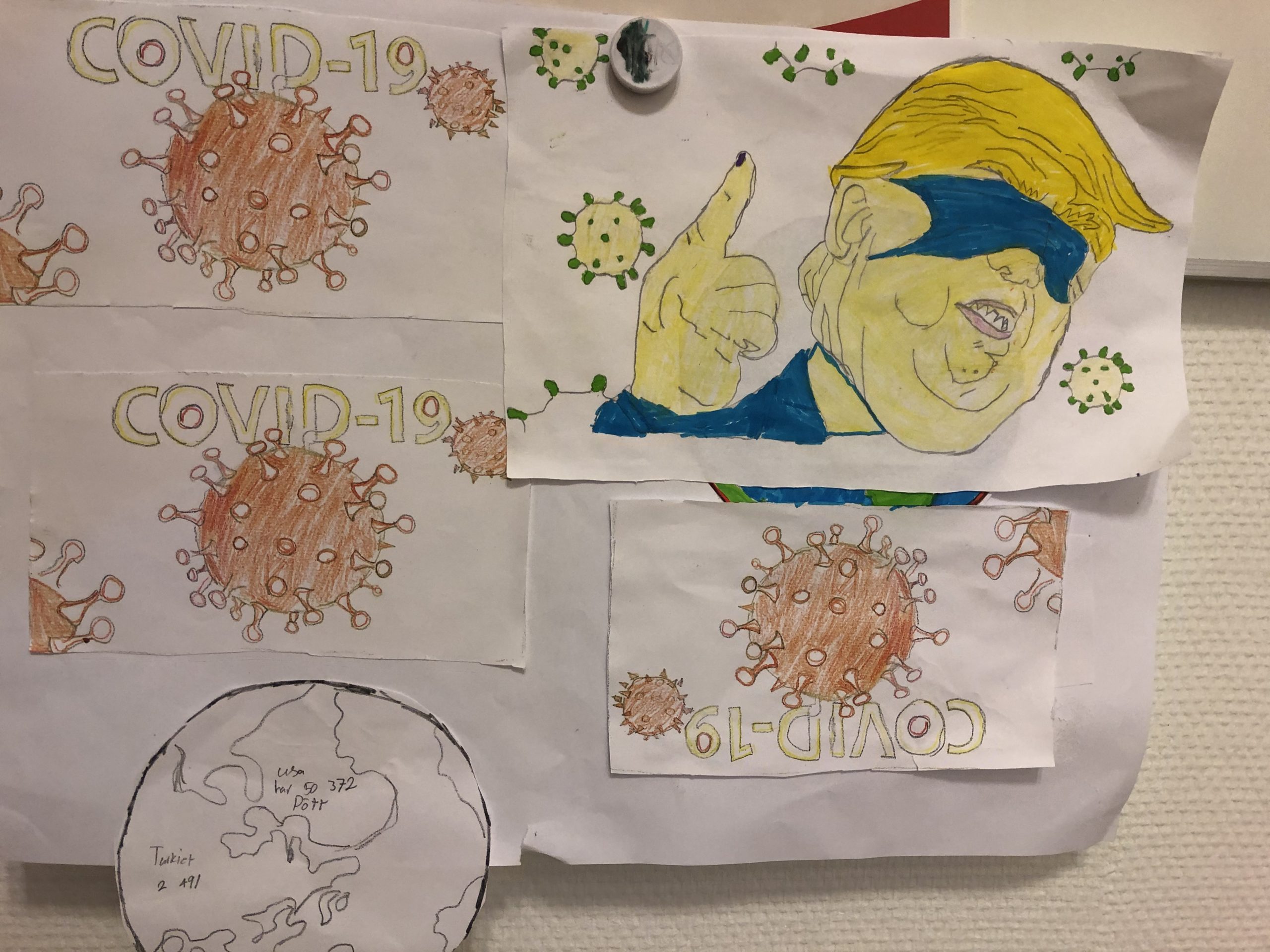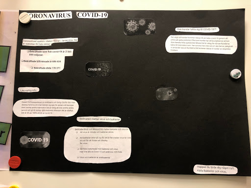 Bidragen i Corona-projektet var allt från Corona-sång, Corona-pjäs till lappar och informationsblad runtom i hela skolan. Nu får vi hoppas att skolan avskräckt Coronan med allt detta och viruset numera inte känner sig välkommen till denna Corona-proof skola! Hehe!