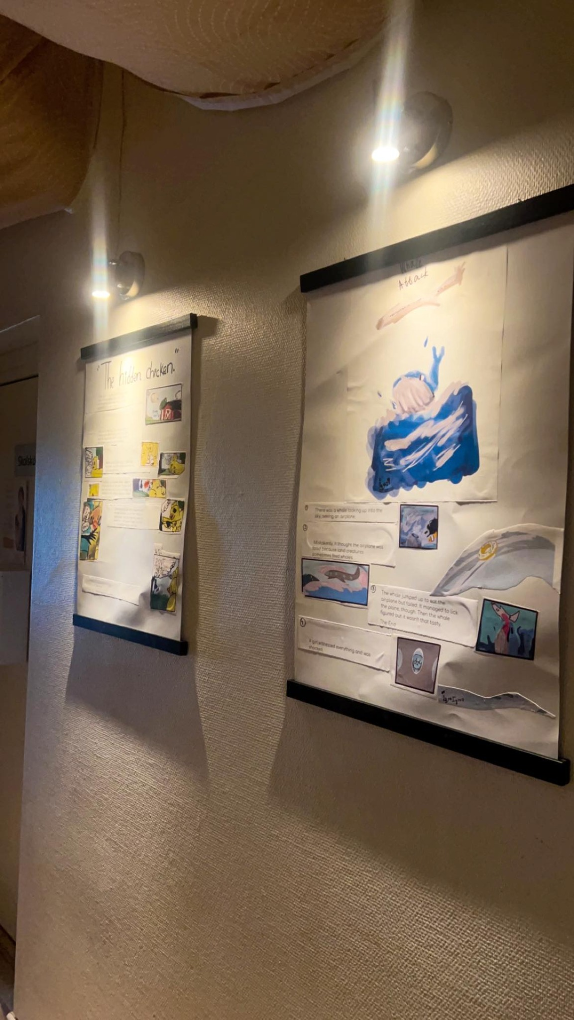 Bilderna är från läshallen och visar några av de korta sagor som våra duktiga elever själva har skrivit.![]()