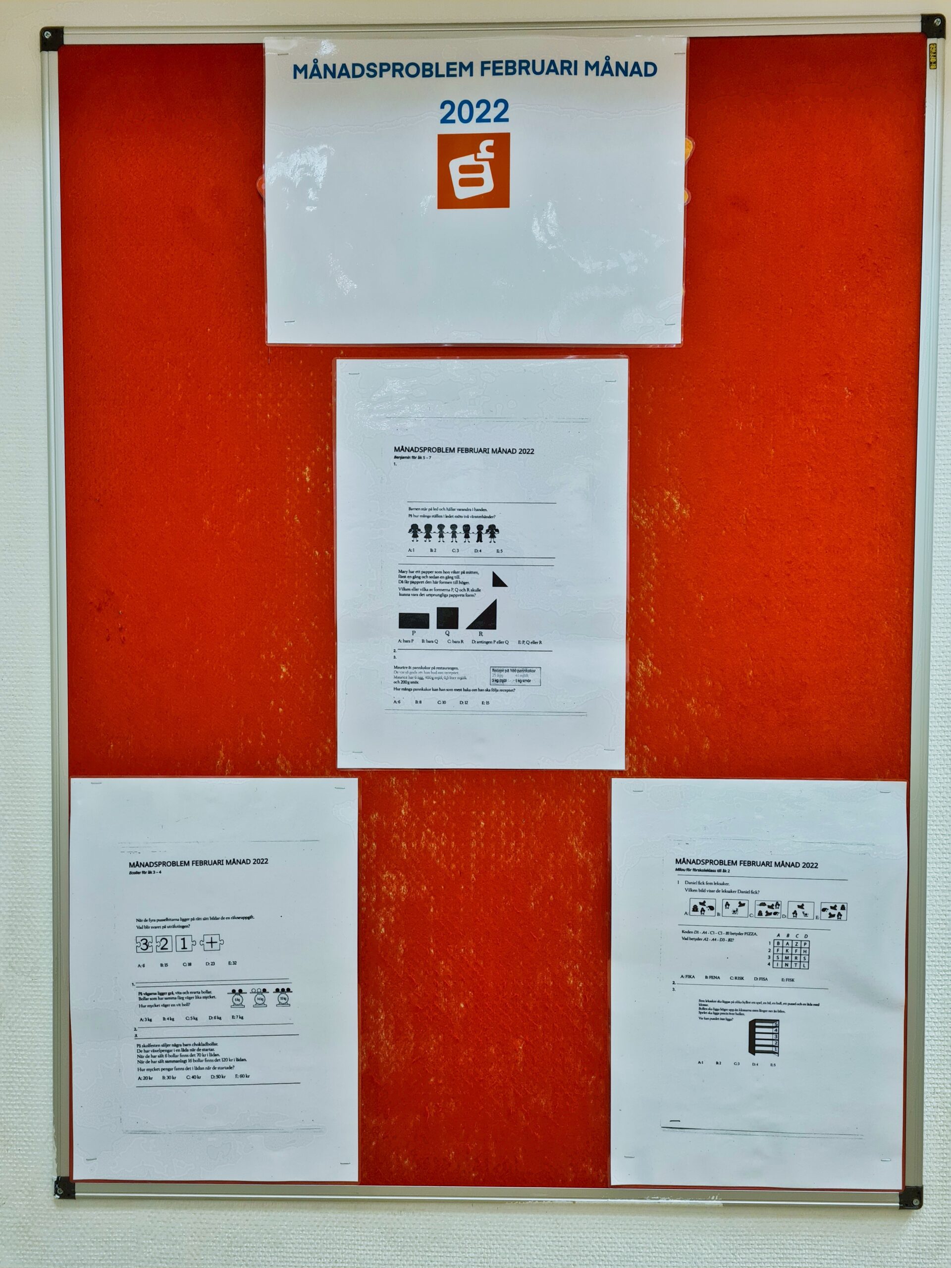 En ny dag och en ny vecka, undrar vad som händer i Algebraskolan. Jag tar mig en flygtur i skolan, alla elever är på sina lektioner och det är tyst i hallarna. På en vägg finns matteproblem uppsatta. Månadens problem? Ah, det ser ut som att det är ett matteproblem för februari månad och man kan vinna ett fint pris. Det här var spännande!