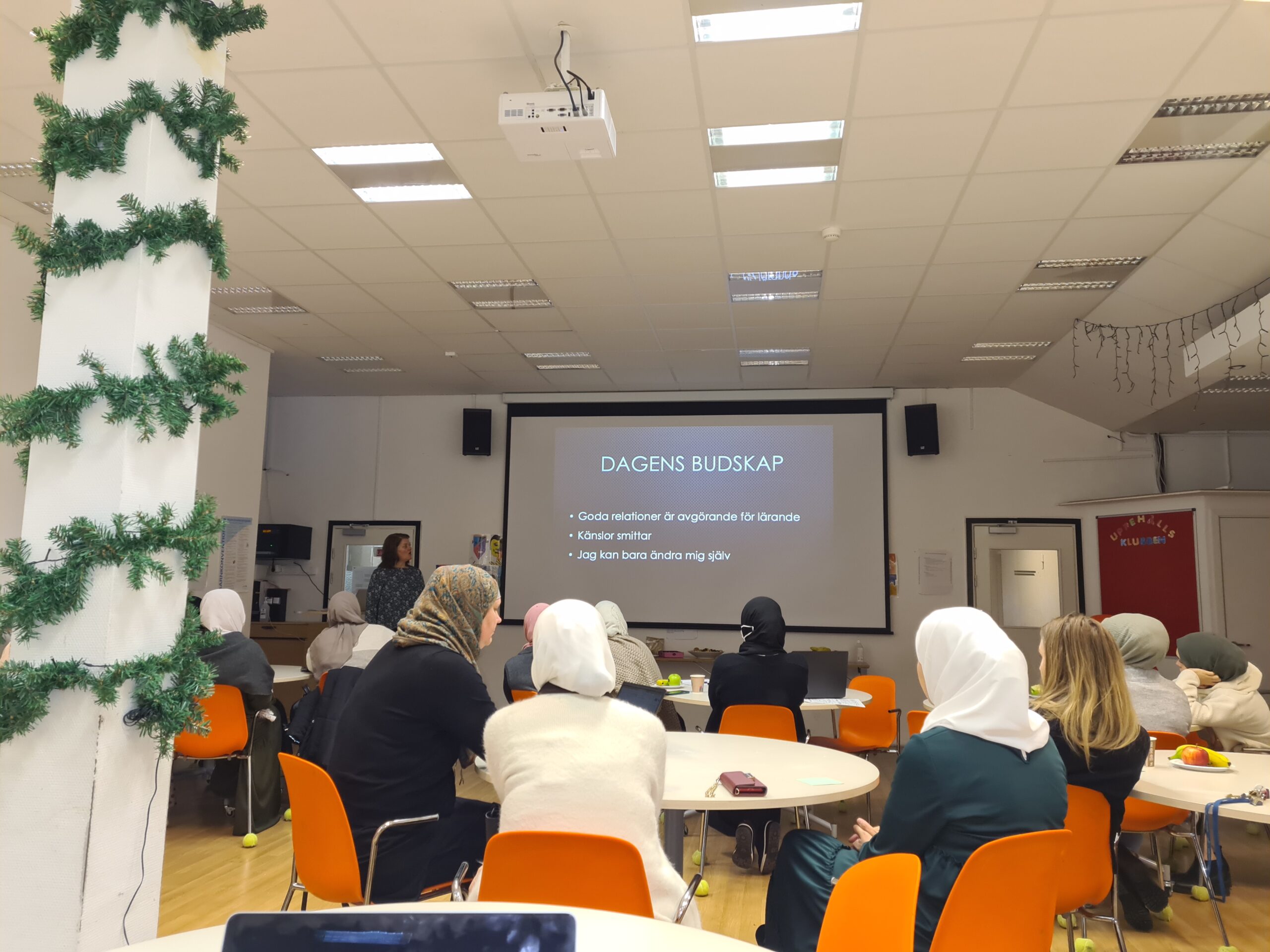 På terminens första studiedag höll Paula, vår specialpedagog, en utbildning för både förskolans och skolans personal, om ”Relationer och lärande för ökad måluppfyllelse”, där hon tog upp relationer för lärande och lågaffektiv bemötande. Vi hade diskussioner om hur man bygger förtroendefulla relationer genom att t.ex.